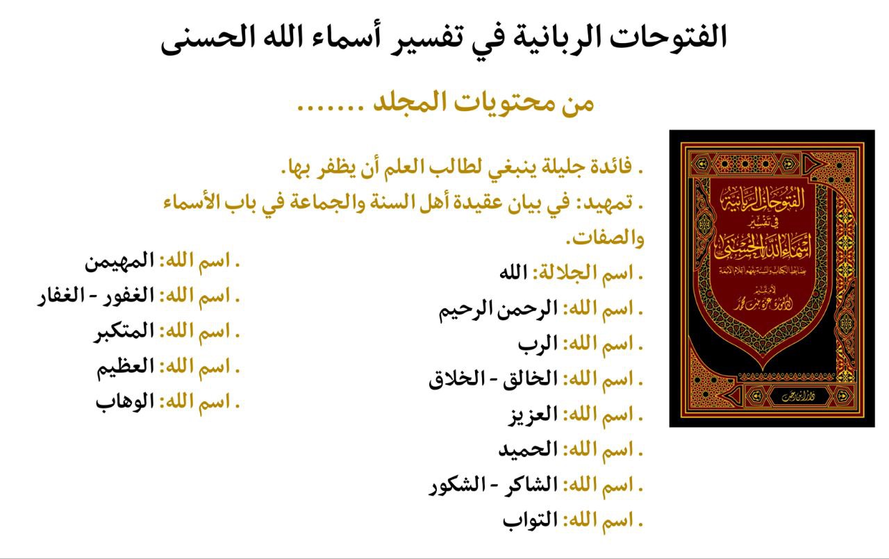 الفتوحات الربانية في تفسير أسماء الله الحسنى